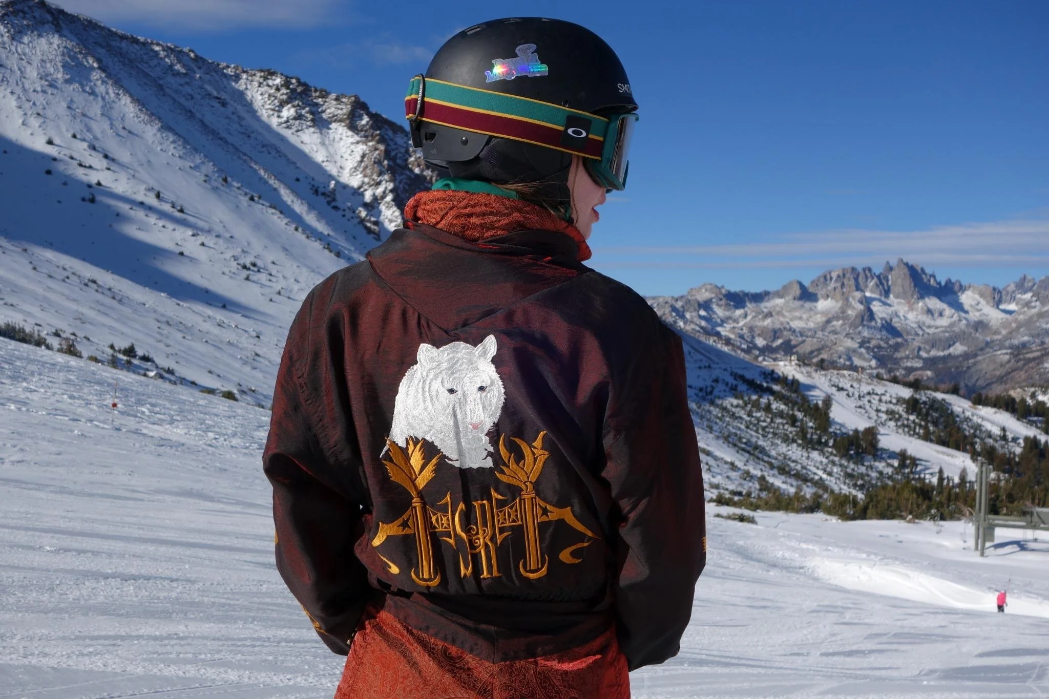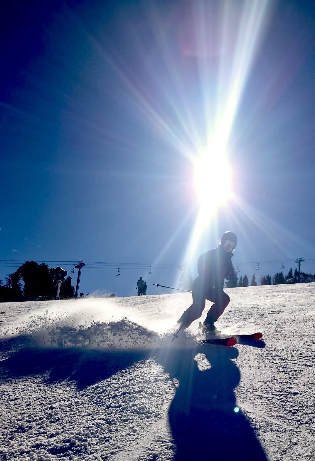 I started writing this story during the winter of 2024–25. It was a rare, generous season—snow clinging to the pine branches lining all the way up the road to Lee Canyon Ski Resort. Parking far from the entrance, I pulled on my hot-pink ski suit in the cold, stuffing my backpack with the essentials: an Uncrustable, camera and my giant laptop. I was ready to make my way toward the Base Area.