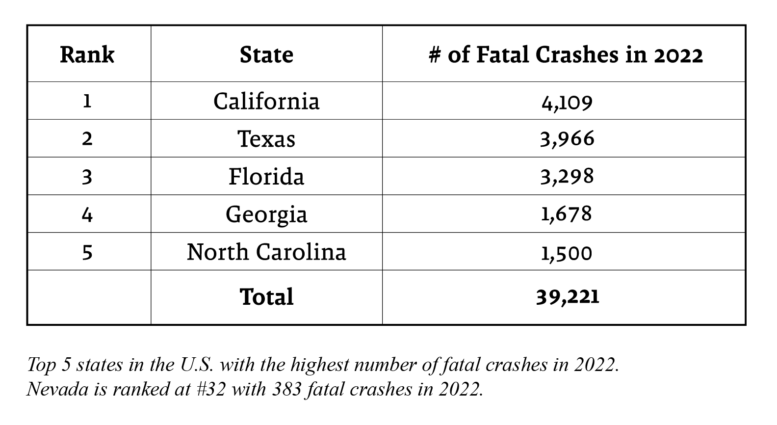 Note that Nevada is 32nd place with 383 crashes—it doesn’t seem to be bad at all compared to California’s whopping 4,109.
